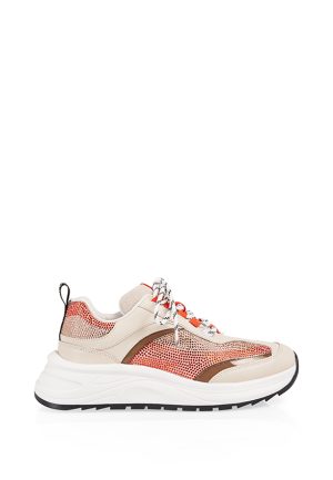 SNEAKERSY Z APLIKACJĄ SZARO-POMARAŃCZOWE