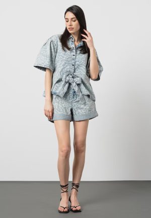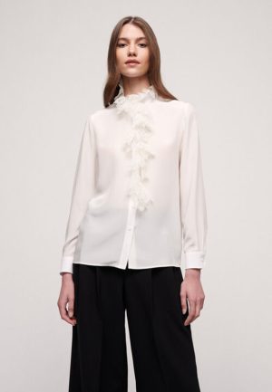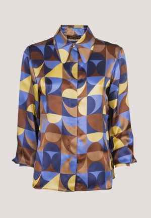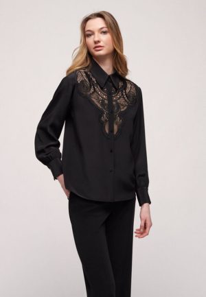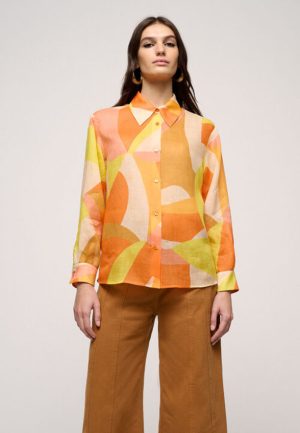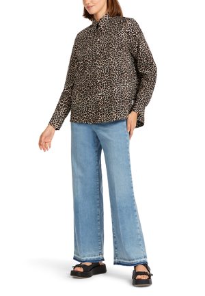 KOSZULA Z TROPIKALNYM PRINTEM BEŻOWO-CZARNA