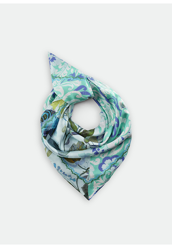 APASZKA JEDWABNA Z WZOREM NIEBIESKA