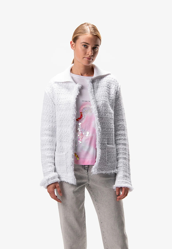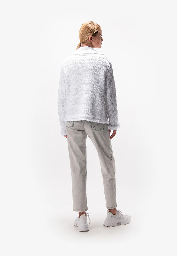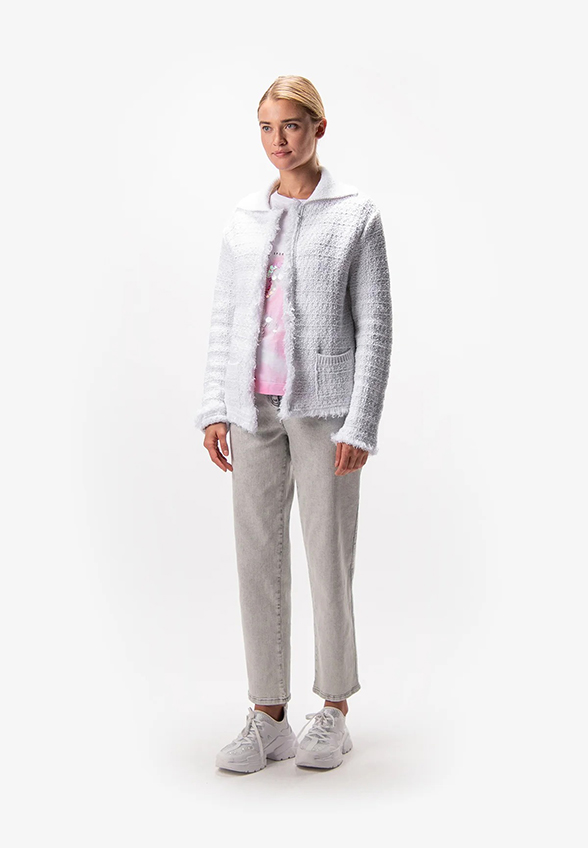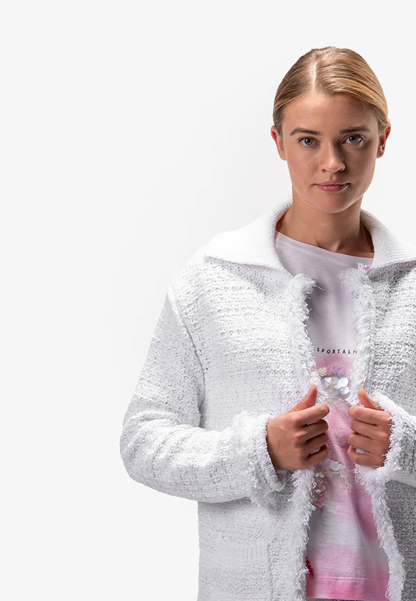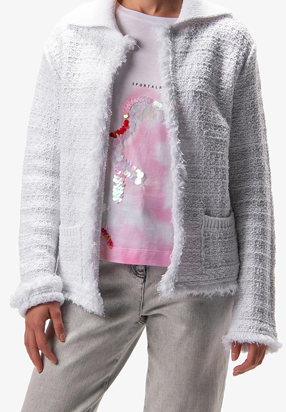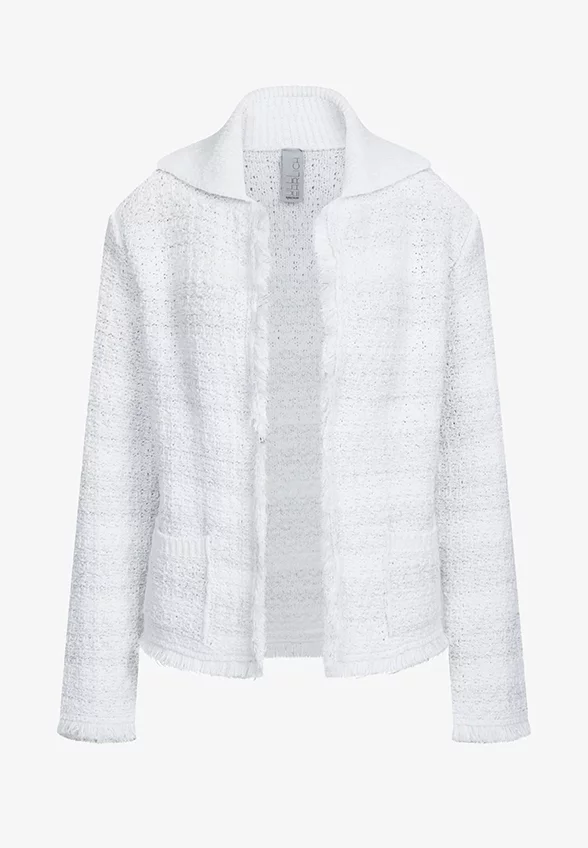KARDIGAN Z PRĄŻKOWANYM KOŁNIERZEM BIAŁY