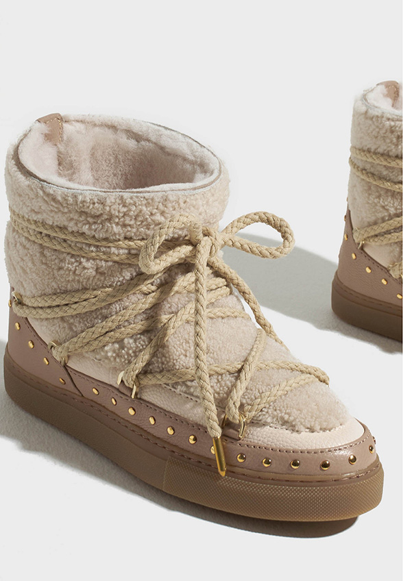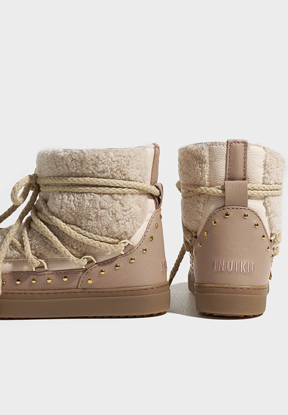 Buty zimowe INUIKII są wyściełane wysokiej jakości materiałem shearling, który pokrywa cały but i utrzymuje stopy cieple bez względu na to, gdzie się znajdujesz. Ze względu na różną wytrzymałość materiału shearling zalecamy noszenie wybranego modelu o rozmiar większego, aby zapewnić optymalną cyrkulację ciepła.