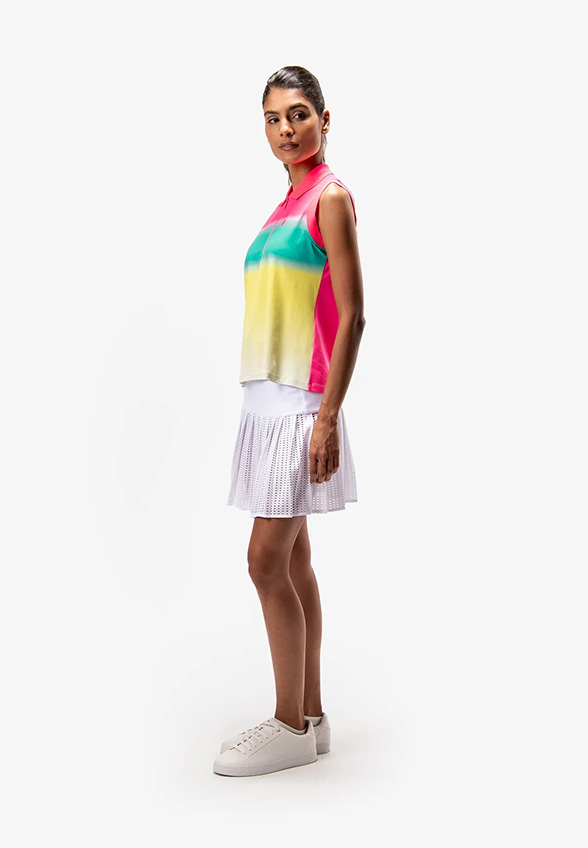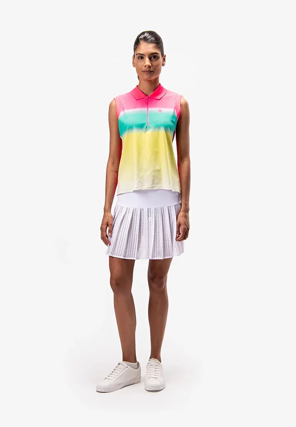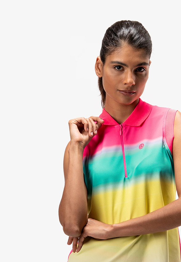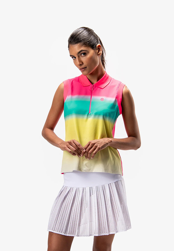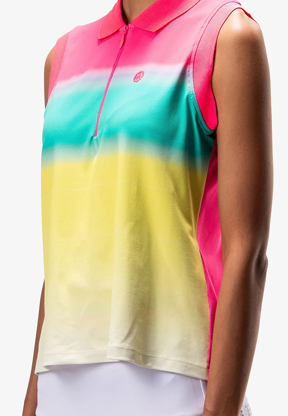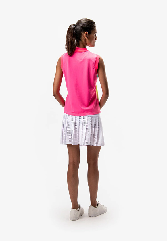 BLUZKA POLO BEZ RĘKAWÓW RÓŻOWO-ŻÓŁTA