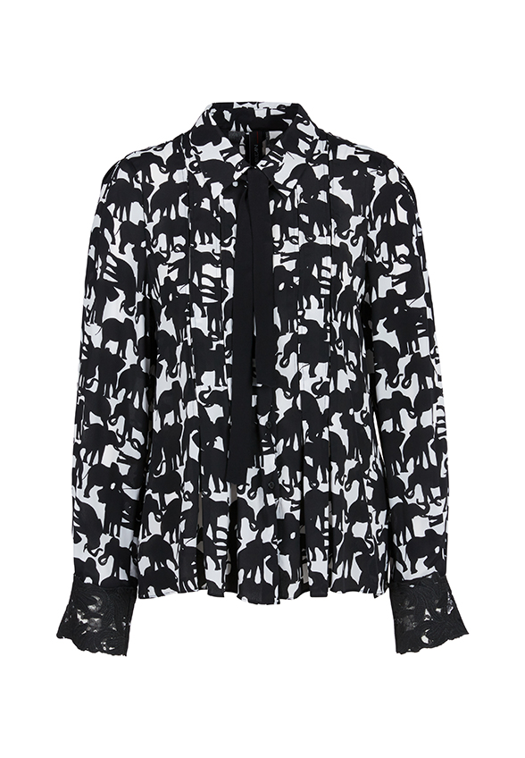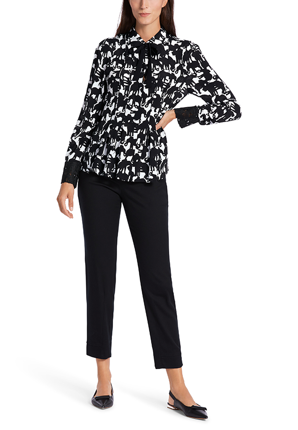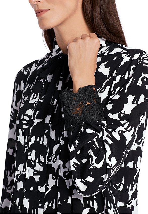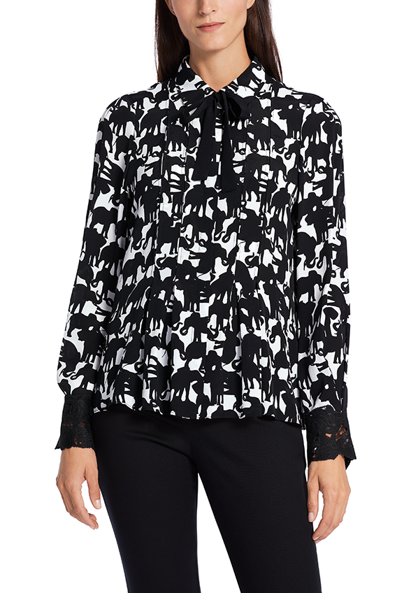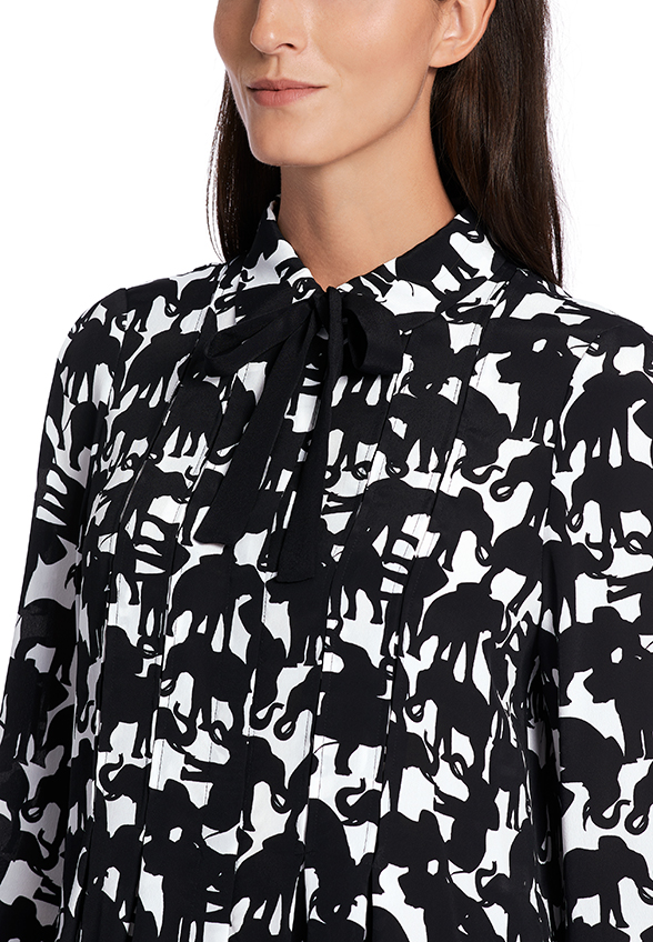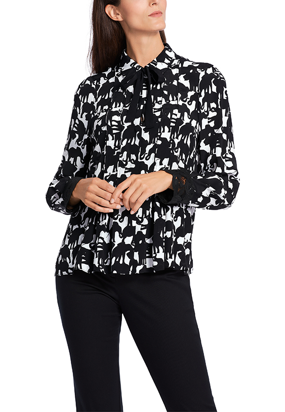 BLUZKA Z NADRUKIEM JEDWABNA CZARNO-BIAŁA