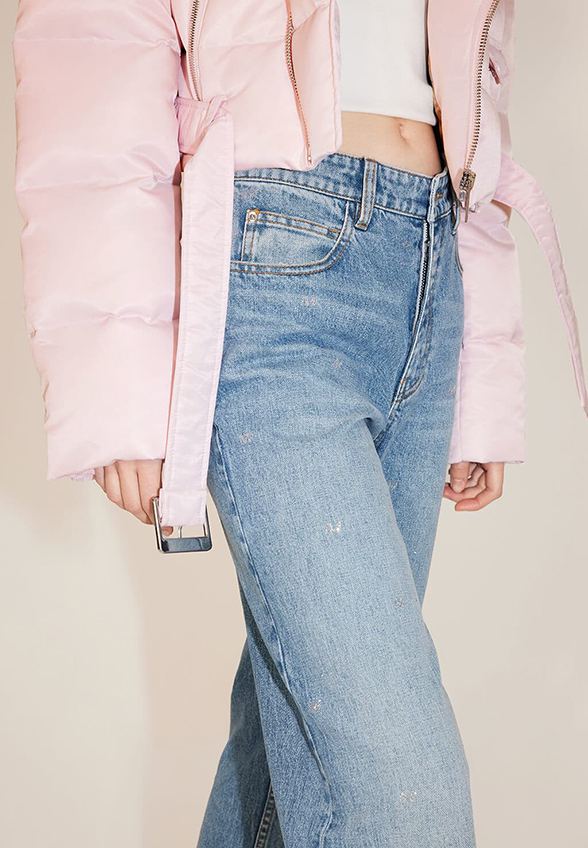 SPODNIE JEANSOWE Z KRYSZTAŁKAMI NIEBIESKIE