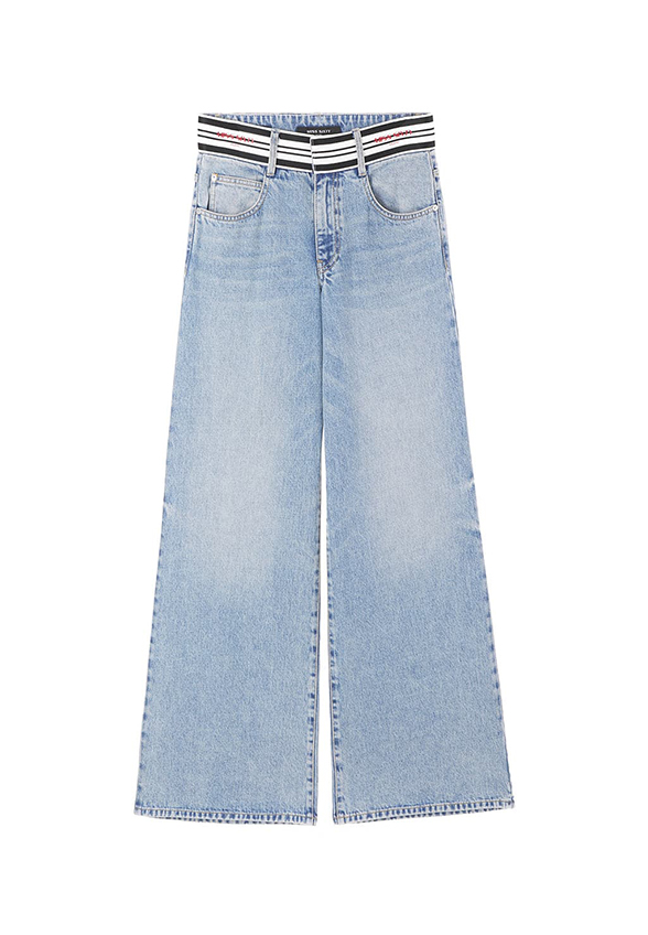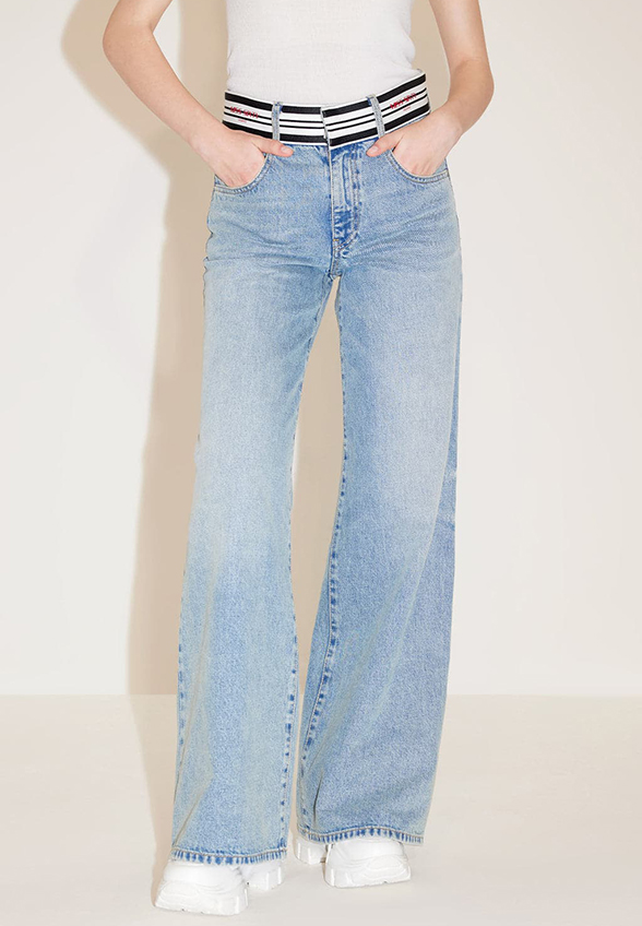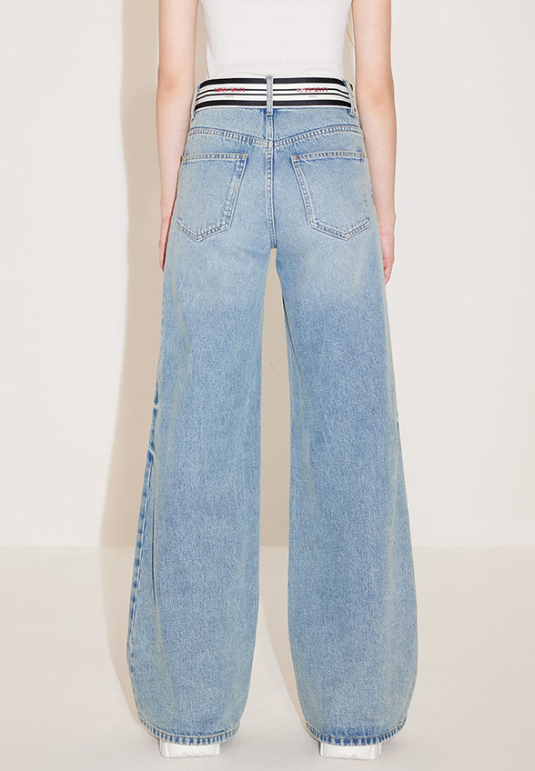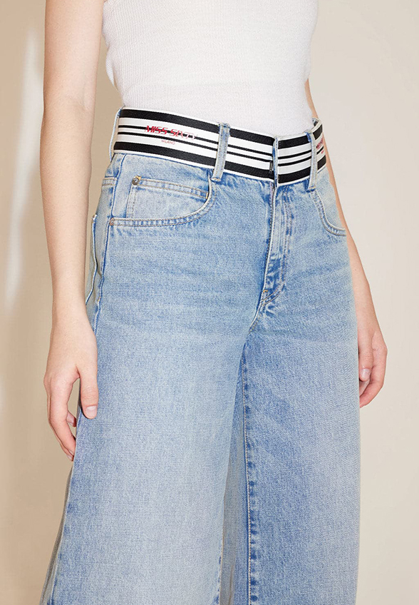 SPODNIE JEANSOWE Z TKANYM PASKIEM NIEBIESKIE