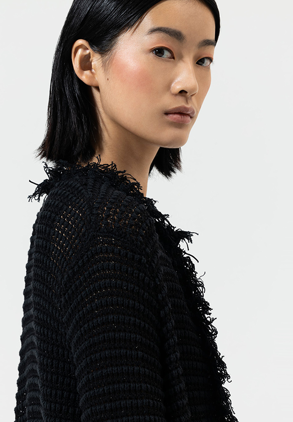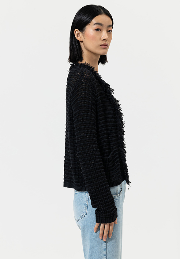 KARDIGAN TWEEDOWY CZARNY