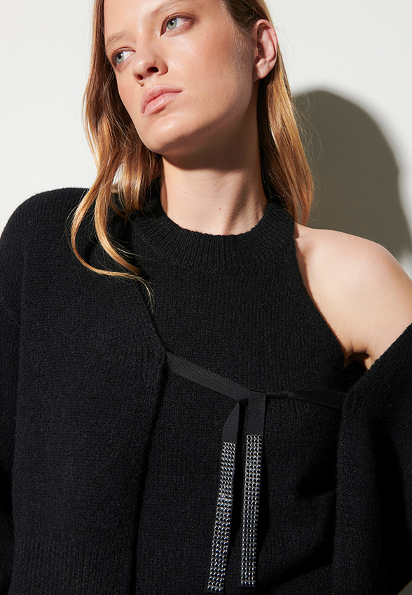 KARDIGAN Z WIĄZANIEM CZARNY