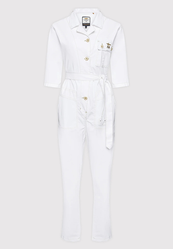 KOMBINEZON Z NASZYWKAMI BIAŁY