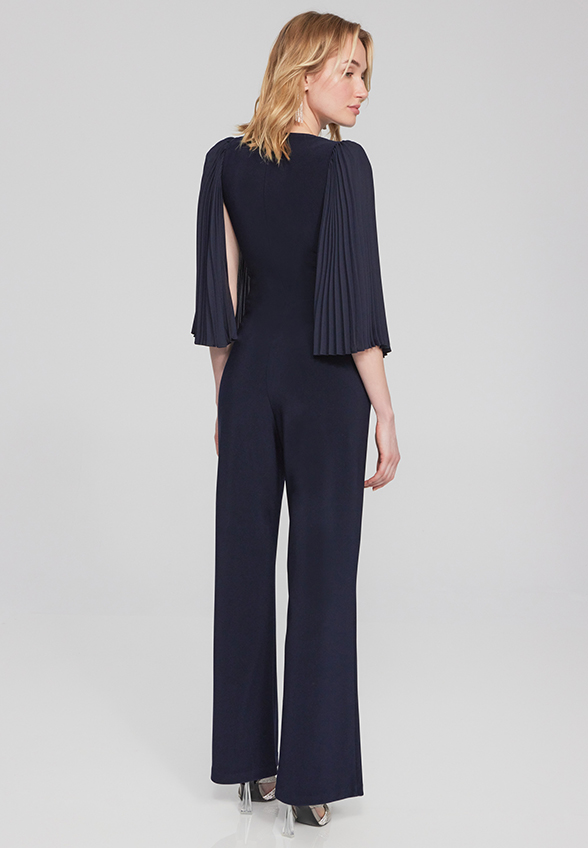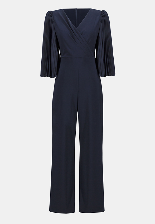 KOMBINEZON Z PLISOWANYMI RĘKAWAMI GRANATOWY
