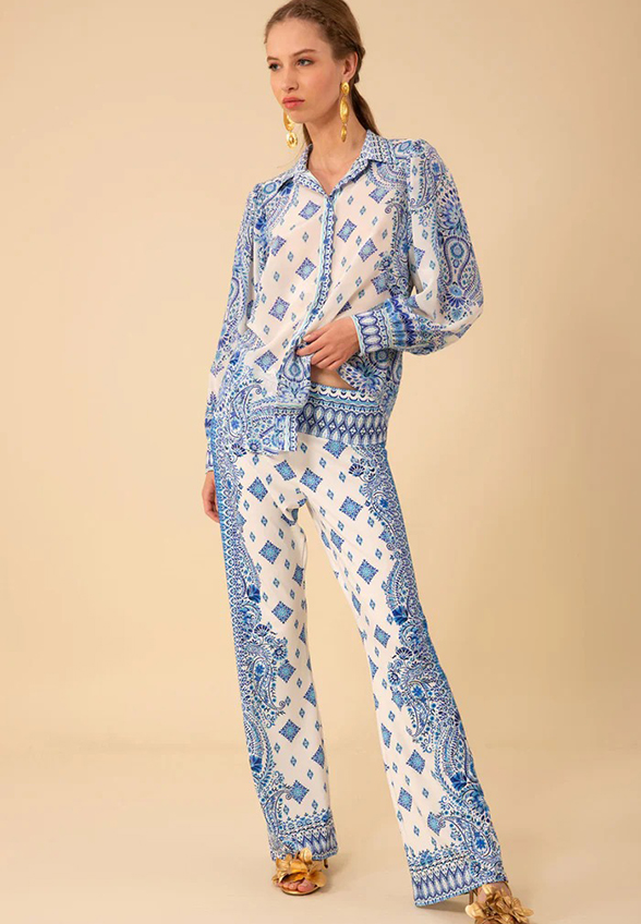 KOSZULA EDEN Z CZYSTEGO JEDWABIU NIEBIESKA