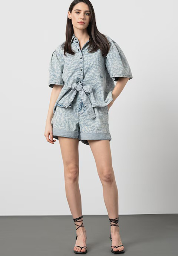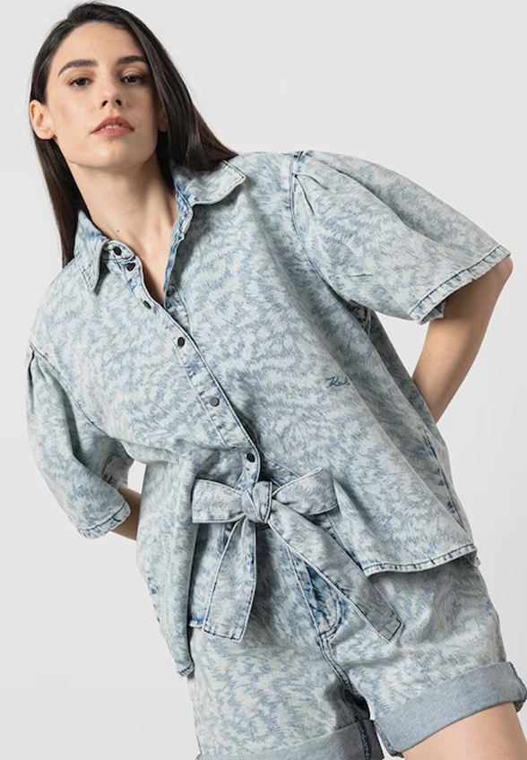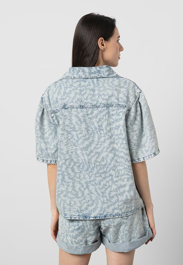 KOSZULA JEANSOWA Z KRÓTKIM RĘKAWEM NIEBIESKA