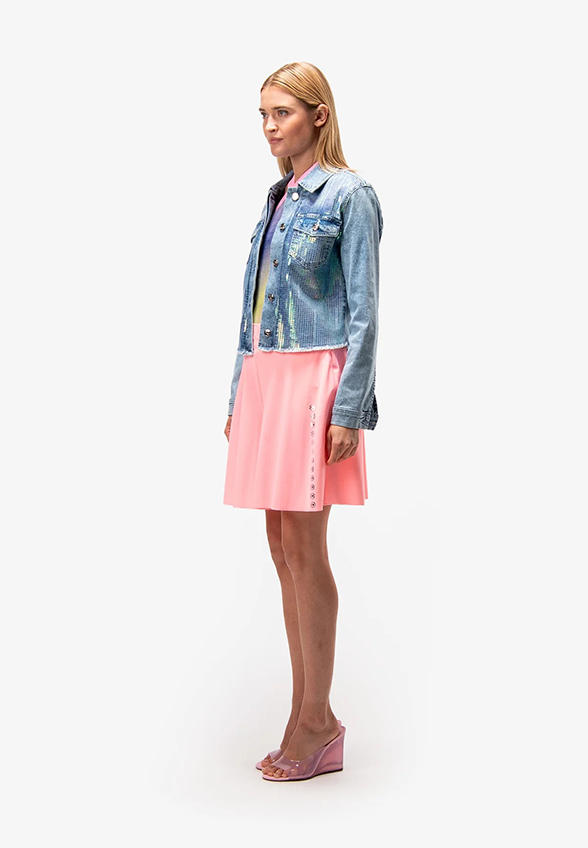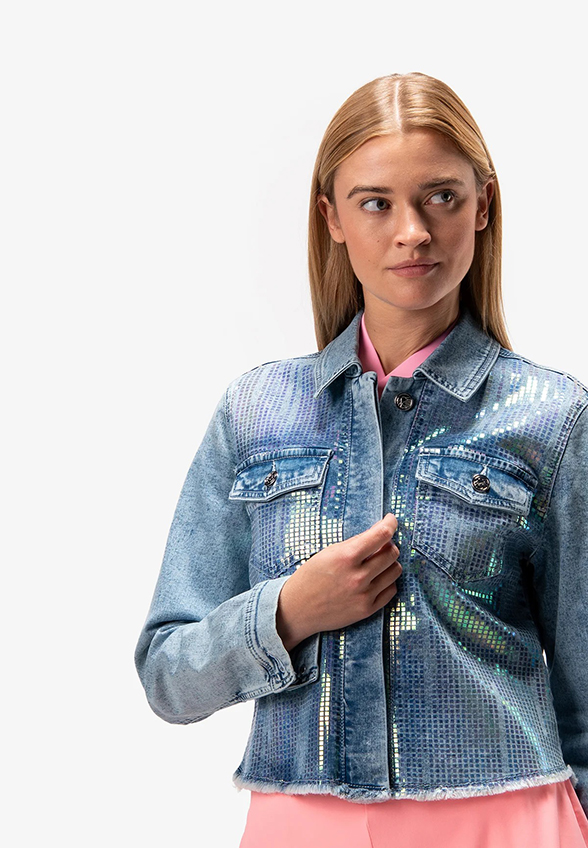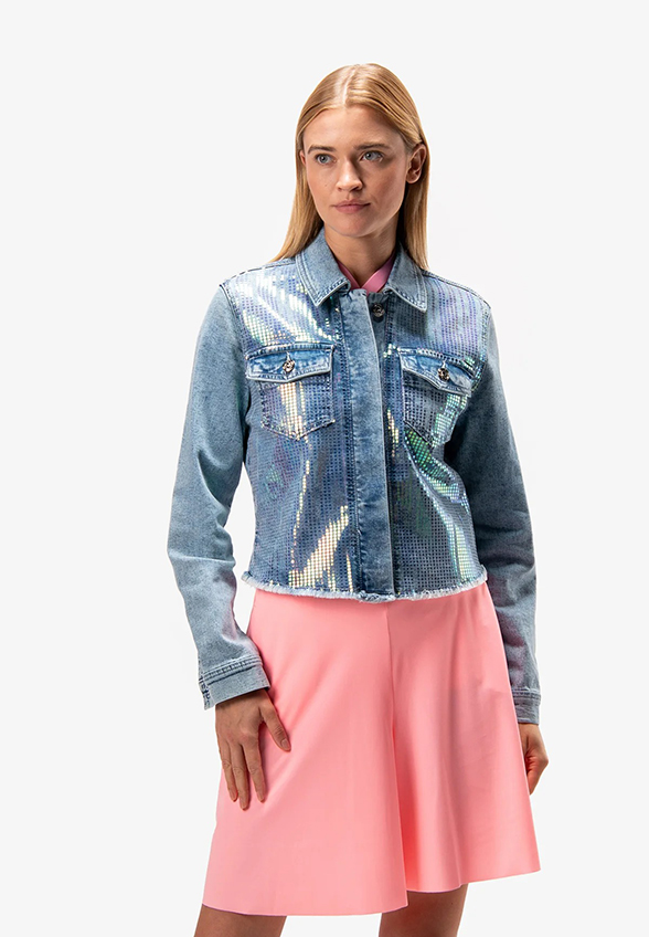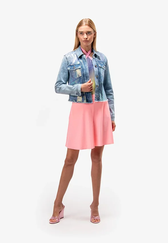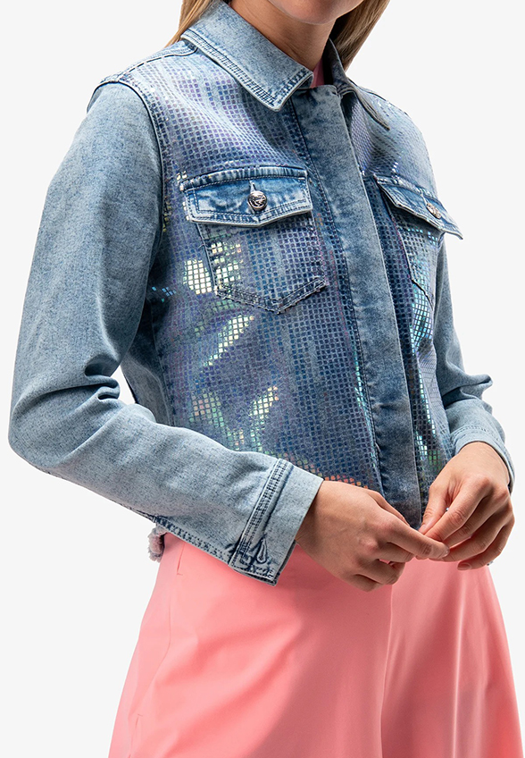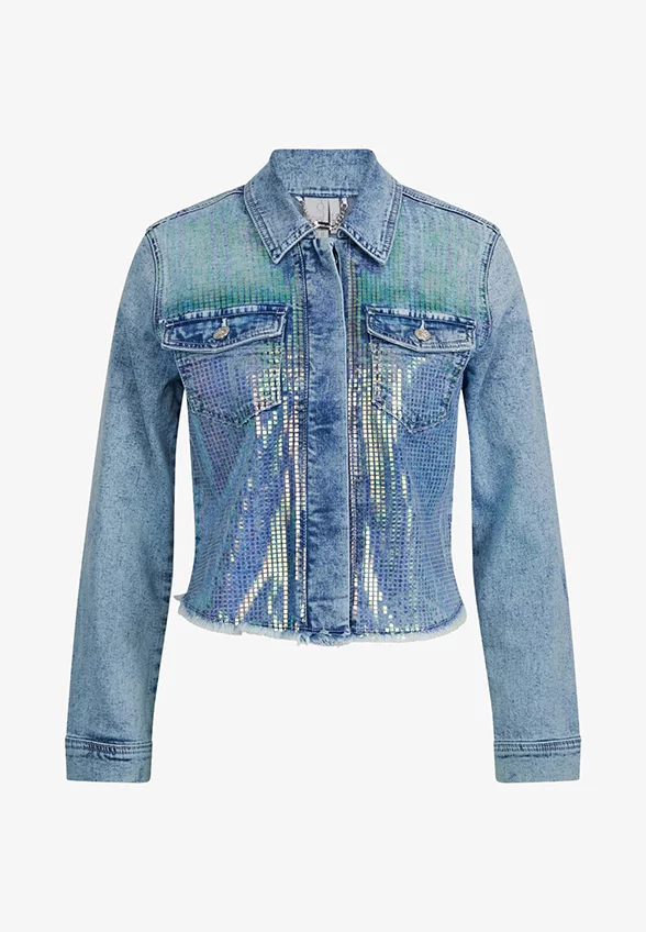 KURTKA JEANSOWA ZE ZDOBIENIEM NIEBIESKA