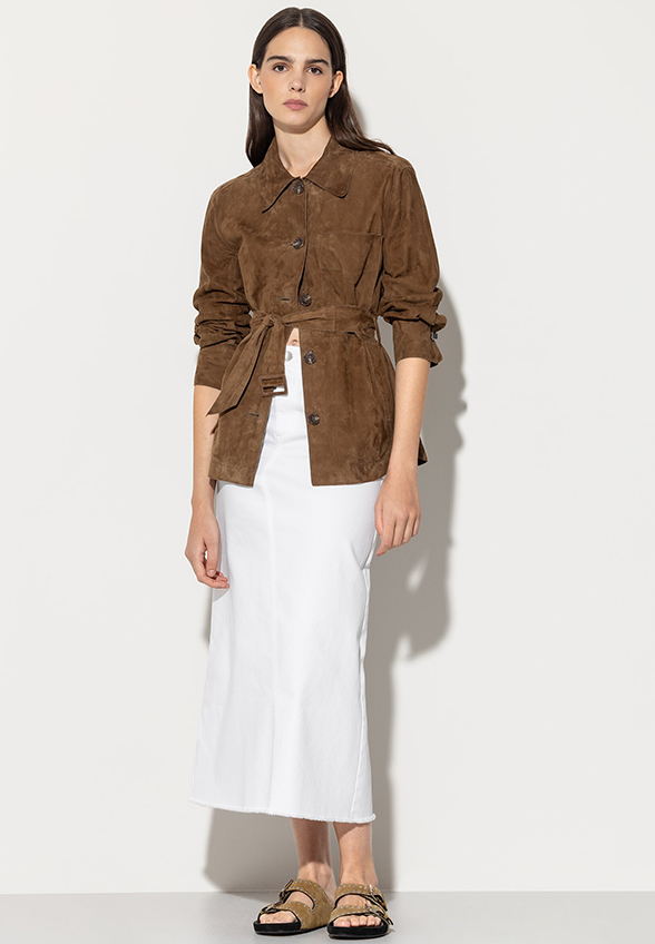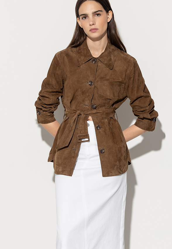 KURTKA ZAMSZOWA Z KOZIEJ SKÓRY BRĄZOWA