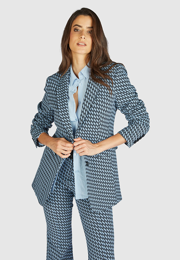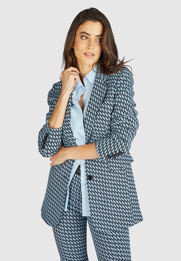 BLEZER Z GRAFICZNYM WZOREM NIEBIESKI