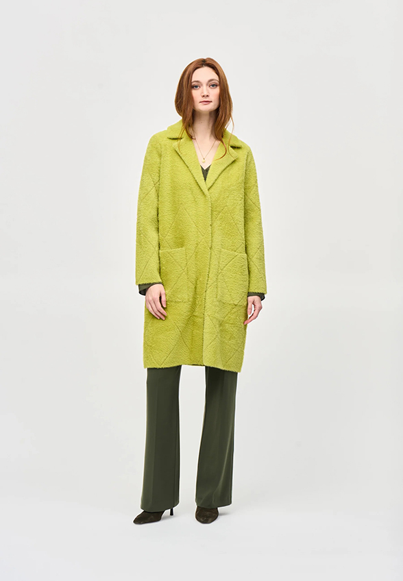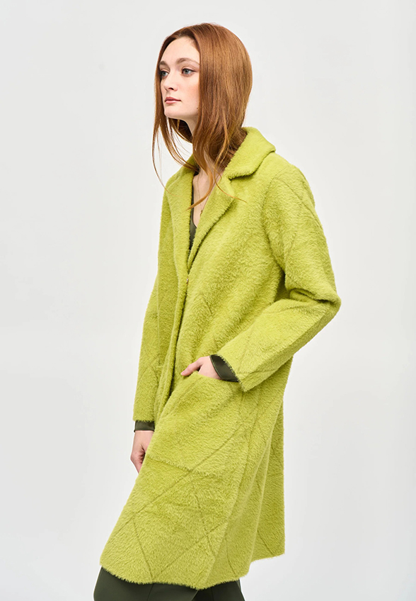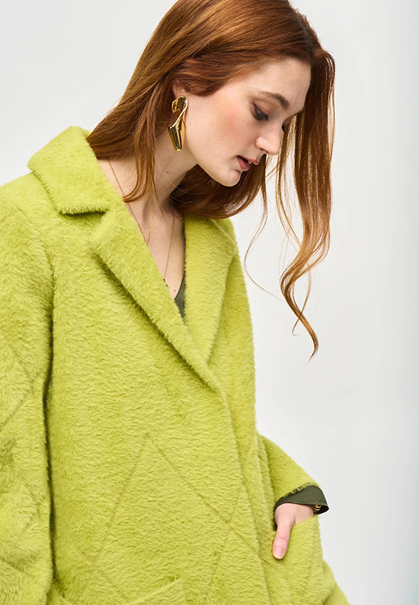 PŁASZCZ FUTRZANY Z PIKOWANIEM LIMONKOWY