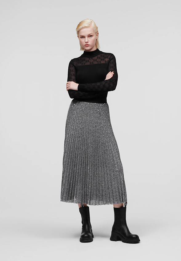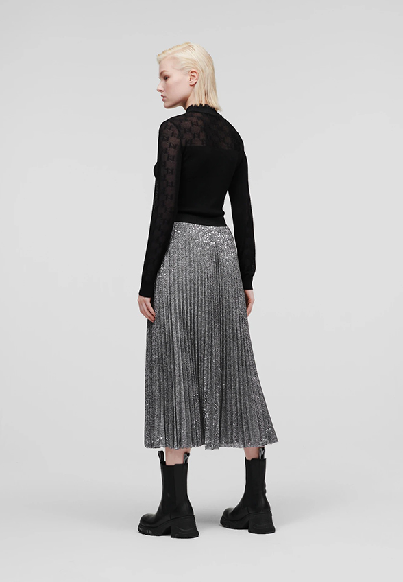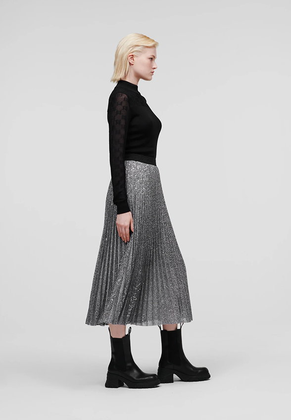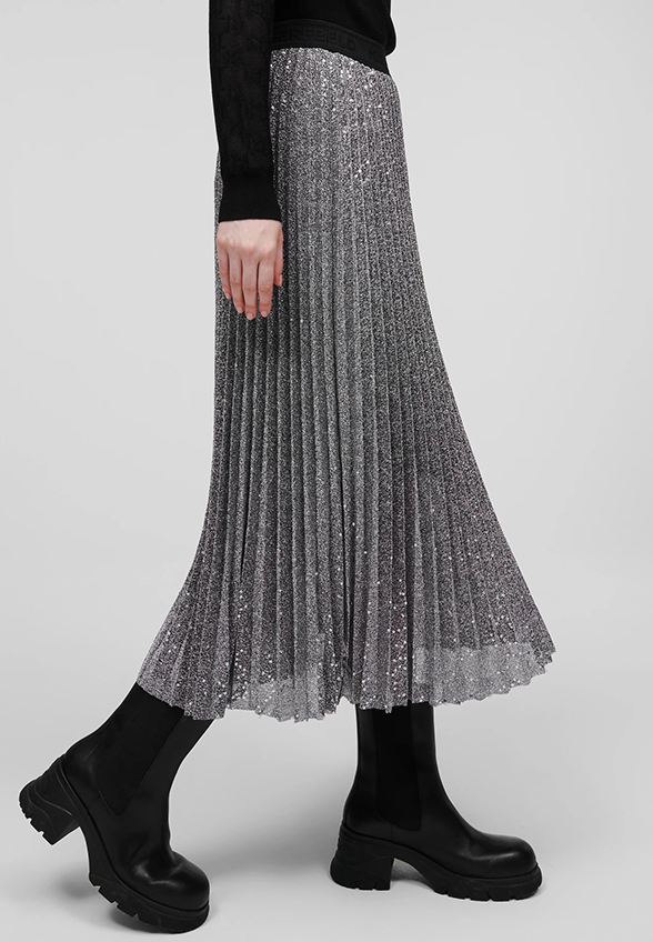 SPÓDNICA SEQUIN PLEATED PLISOWANA Z CEKINAMI SREBRNA
