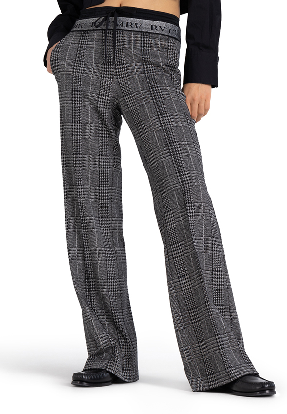 SPODNIE AVA W PEPITKĘ SZARE