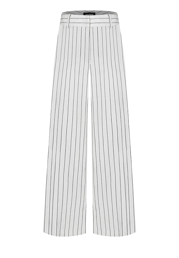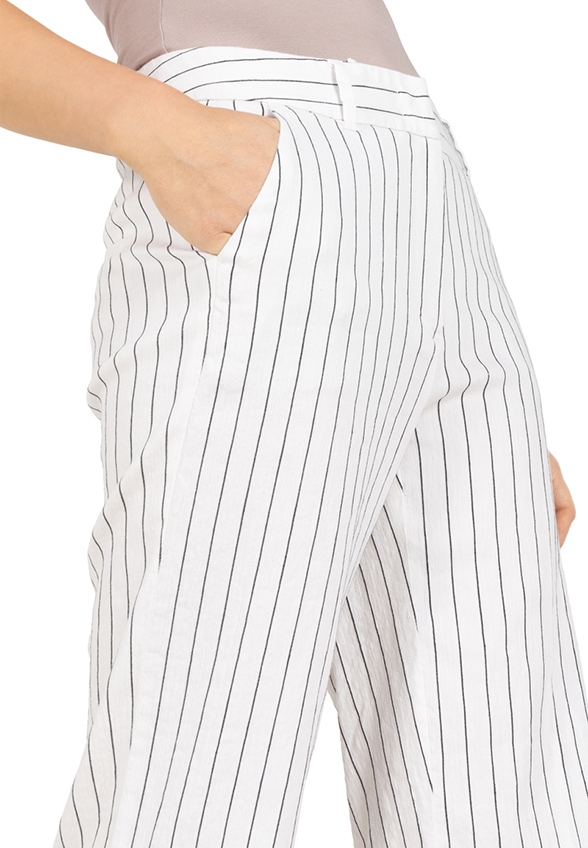 SPODNIE CALIFORNIA LNIANE W PASKI BIAŁE