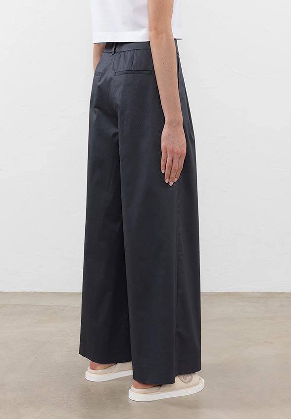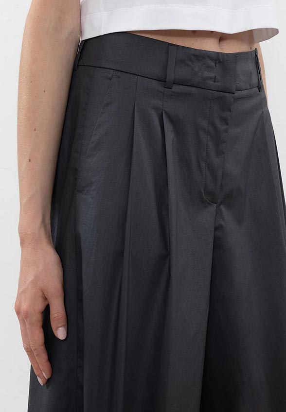 SPODNIE SZEROKIE Z SATYNY BAWEŁNIANEJ CZARNE