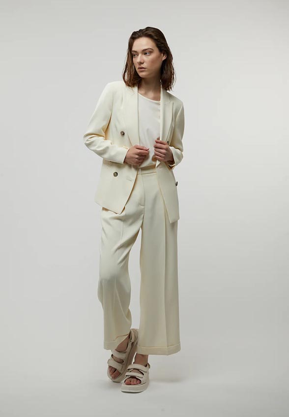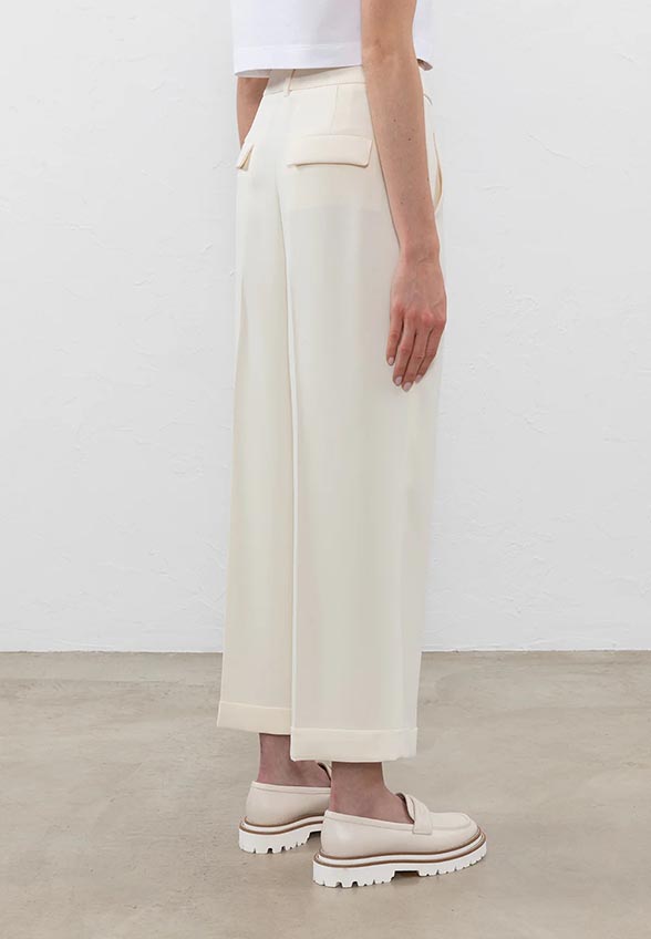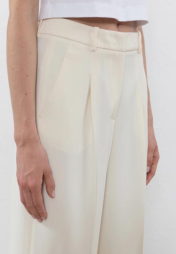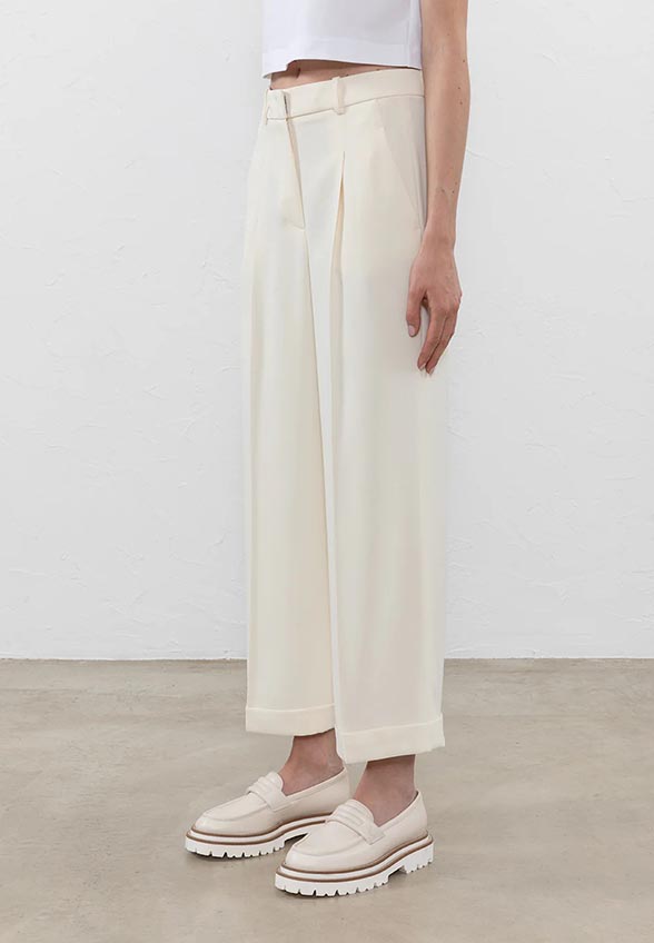 SPODNIE SZEROKIE Z ZAKŁADKAMI KREMOWE