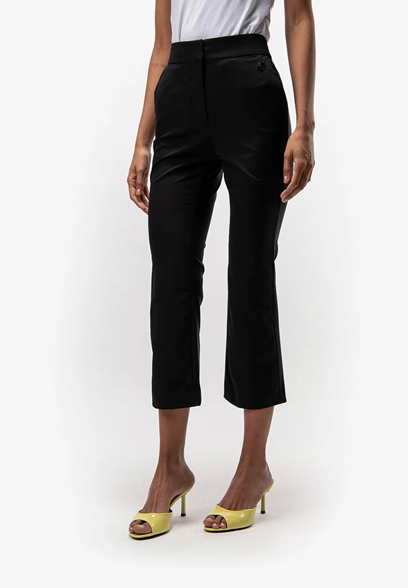 SPODNIE Z ROZKLOSZOWANYMI NOGAWKAMI CZARNE