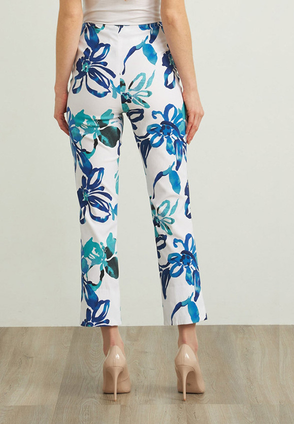 SPODNIE Z NADRUKIEM W KWIATY BIAŁO-NIEBIESKIE