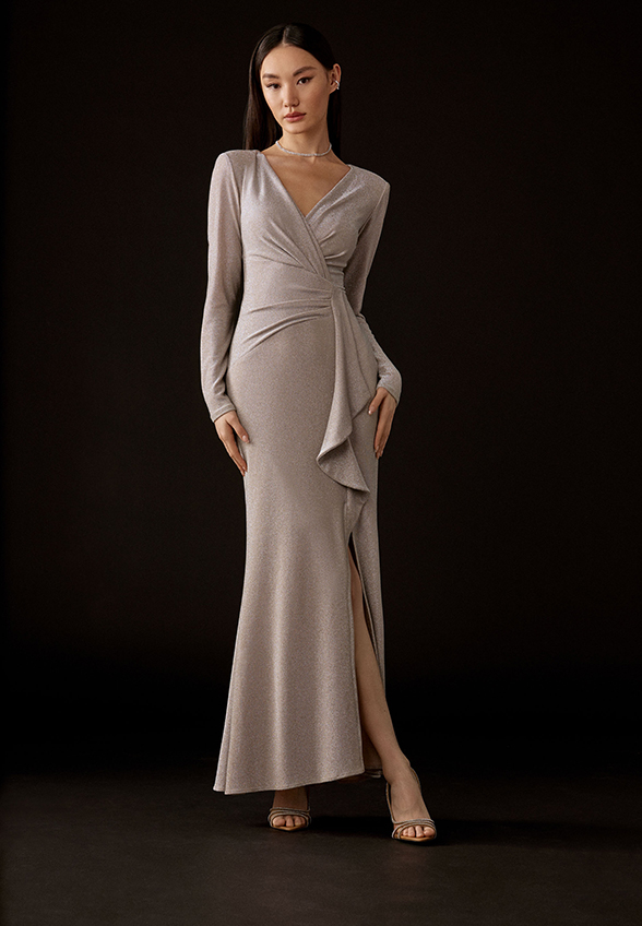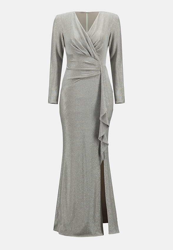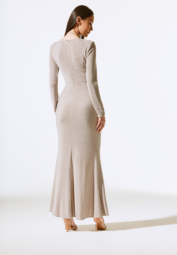 SUKNIA BŁYSZCZĄCA MAXI BEŻOWA