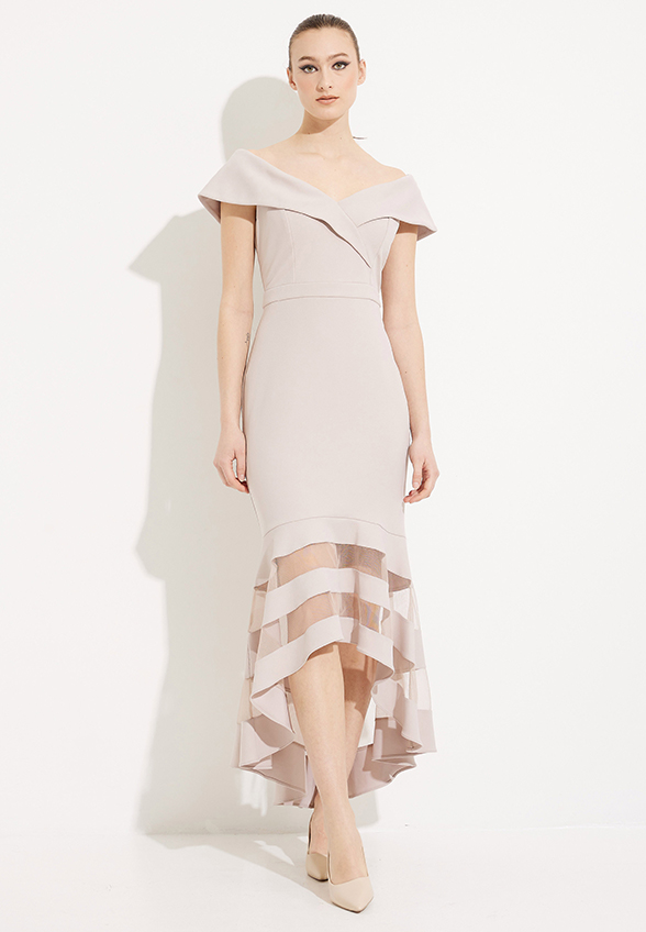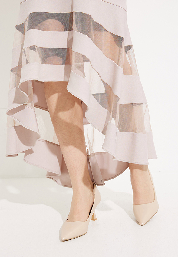 SUKNIA Z ASYMETRYCZNYM DOŁEM BEŻOWA