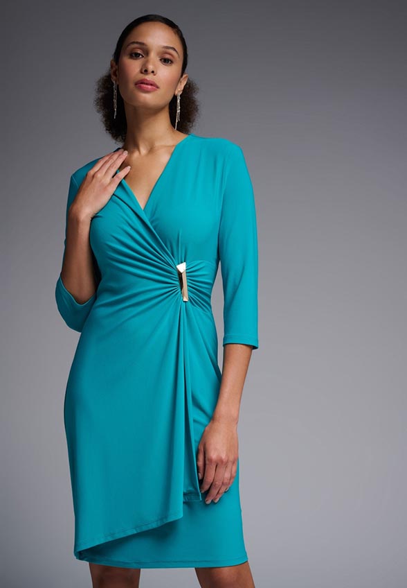 SUKIENKA DOPASOWANA Z MARSZCZENIEM TURKUSOWA