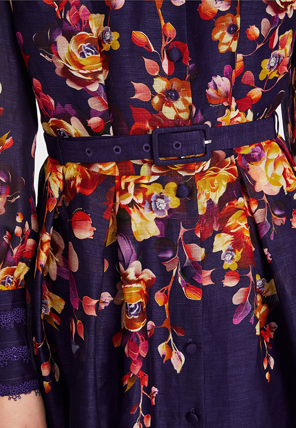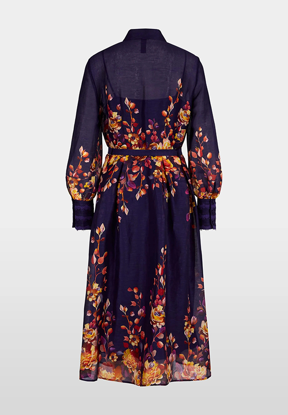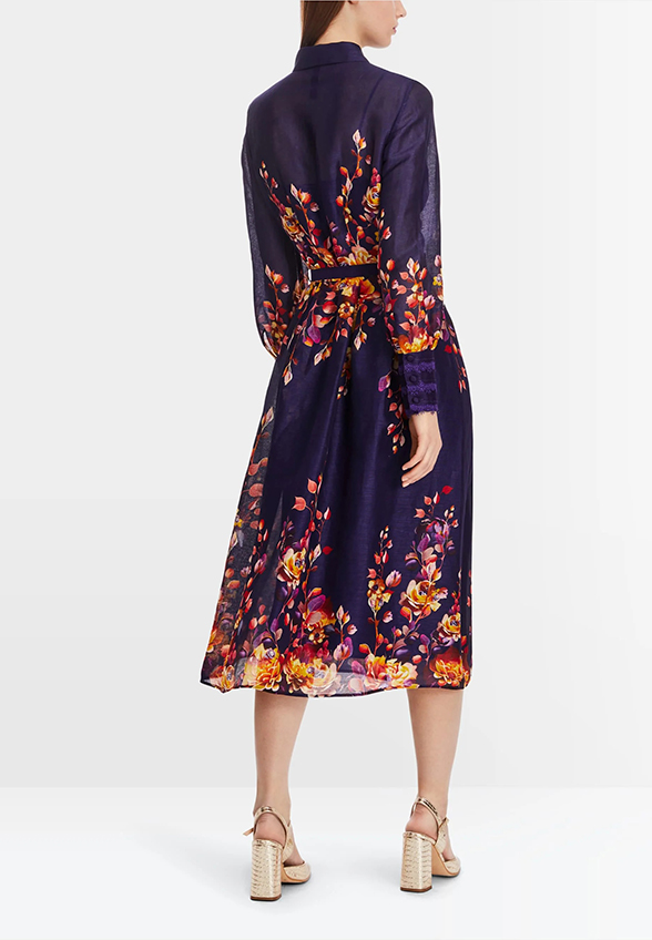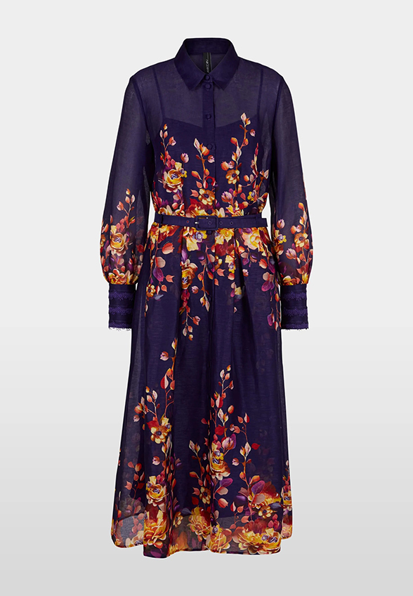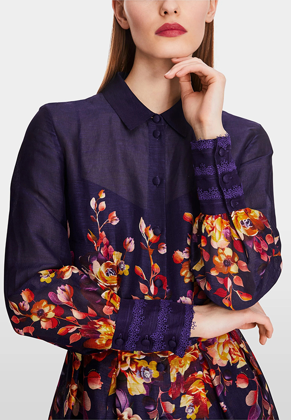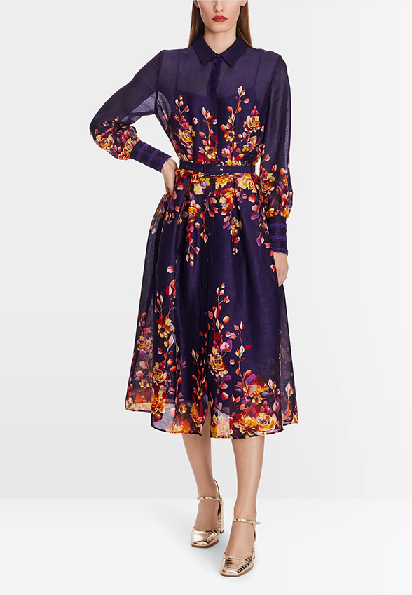 SUKIENKA JEDWABNA W KWIATY FIOLETOWA