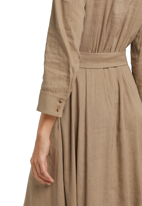 SUKIENKA KOSZULOWA LNIANA BRĄZOWA