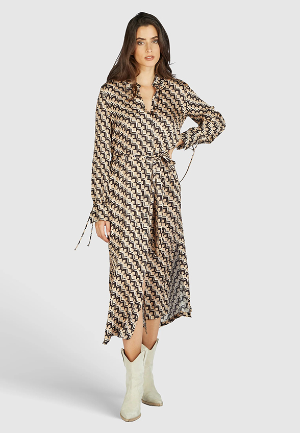SUKIENKA KOSZULOWA Z PRINTEM BEŻOWA