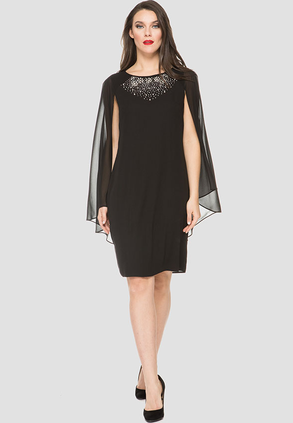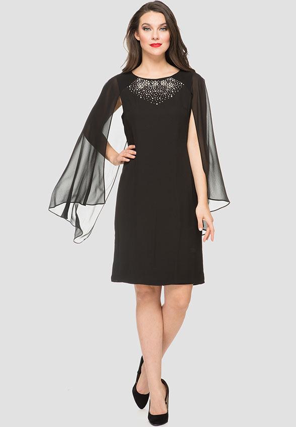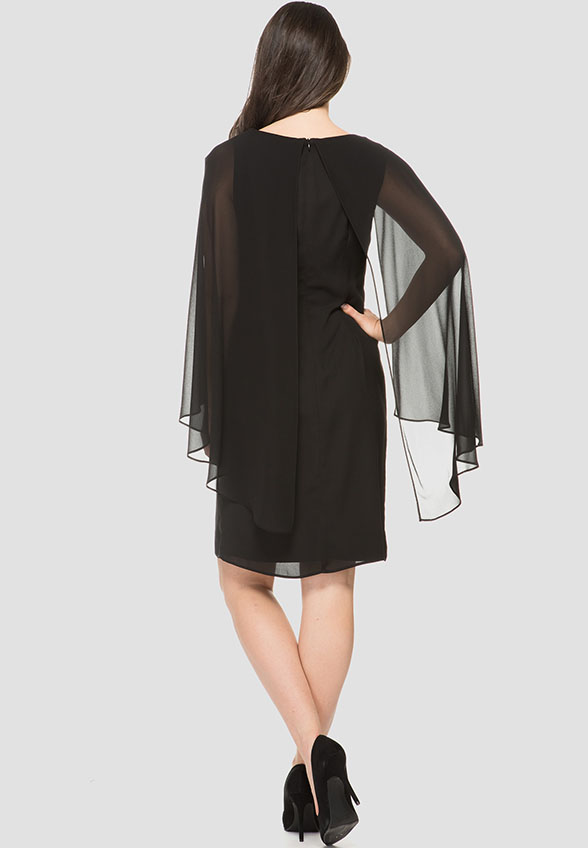 SUKIENKA Z SZYFONOWYMI RĘKAWAMI I ZDOBIENIEM CZARNA