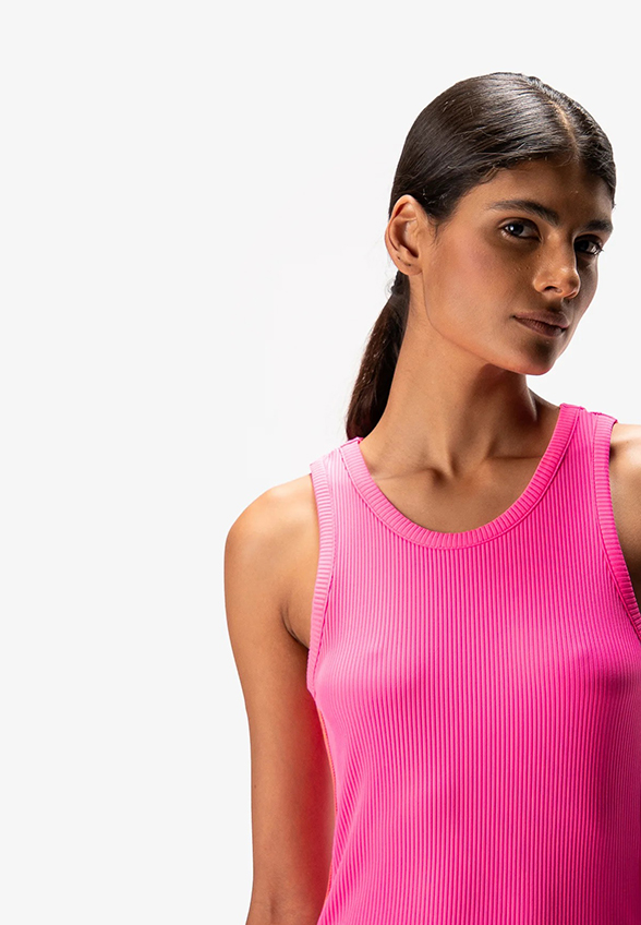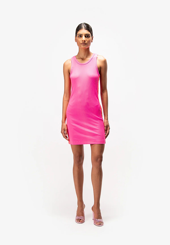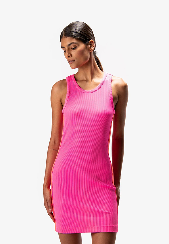 SUKIENKA PRĄŻKOWANA BEZ RĘKAWÓW RÓŻOWA