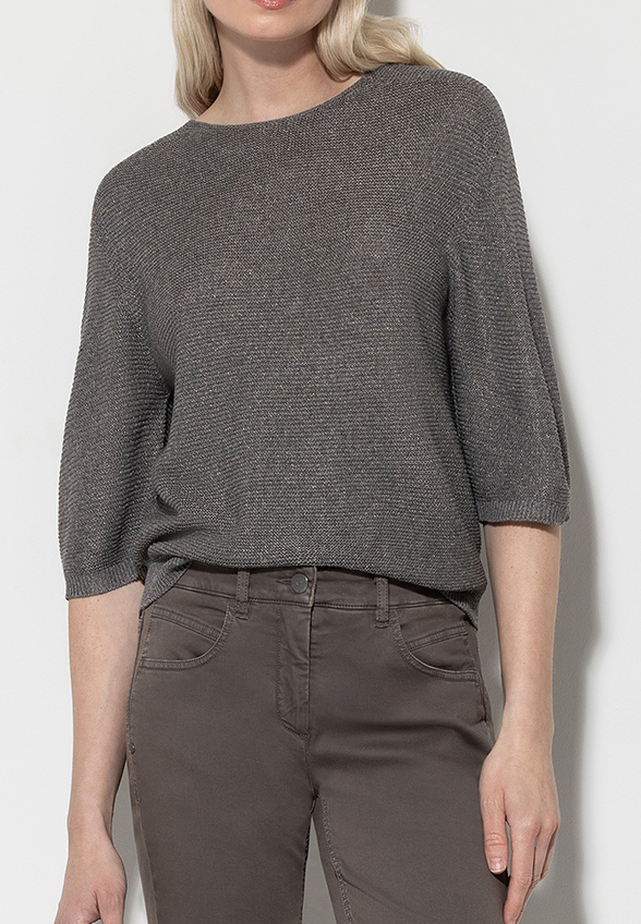 SWETER Z BŁYSZCZĄCĄ PRZĘDZĄ SZARY