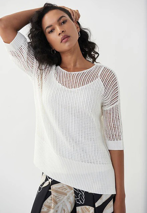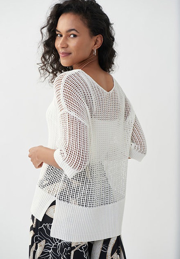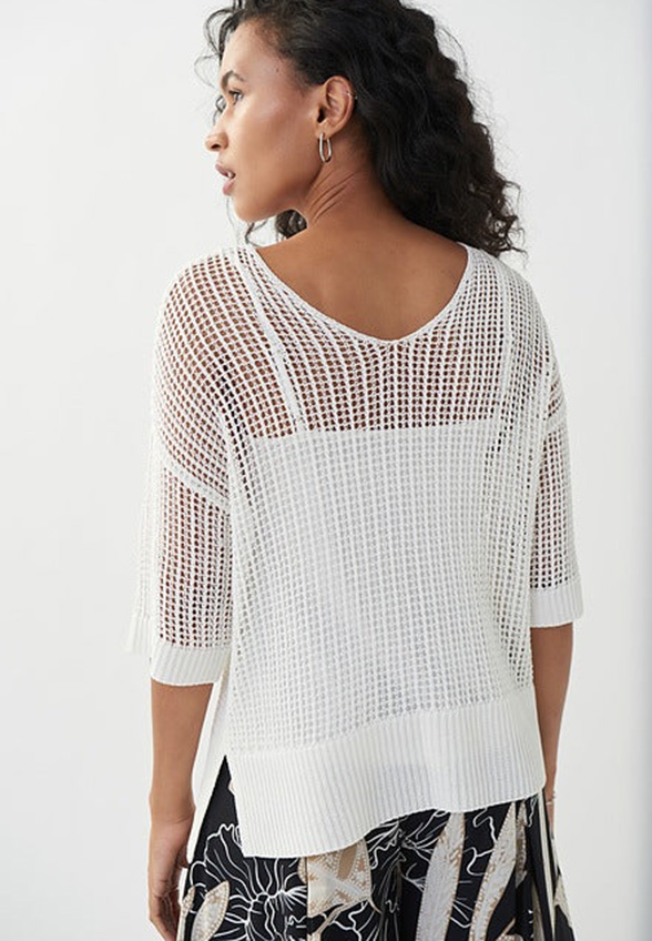 SWETER AŻUROWY Z TOPEM BIAŁY