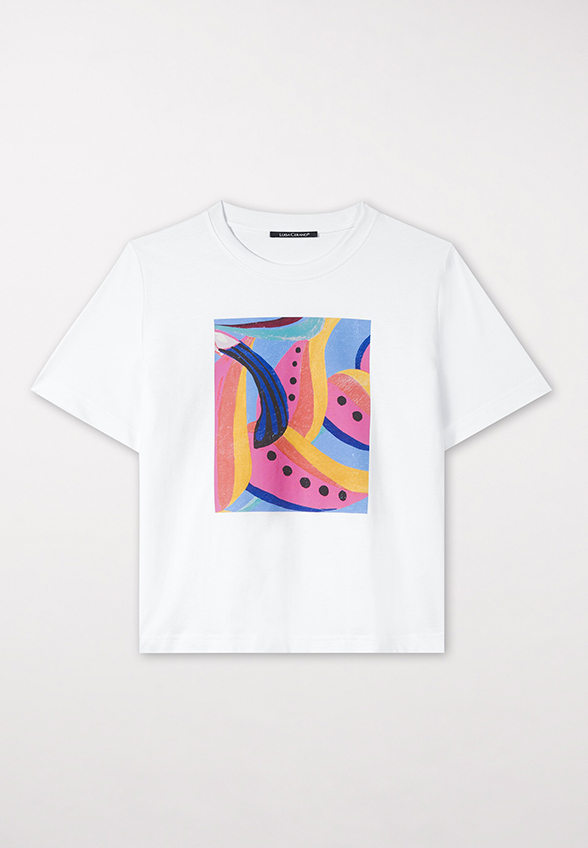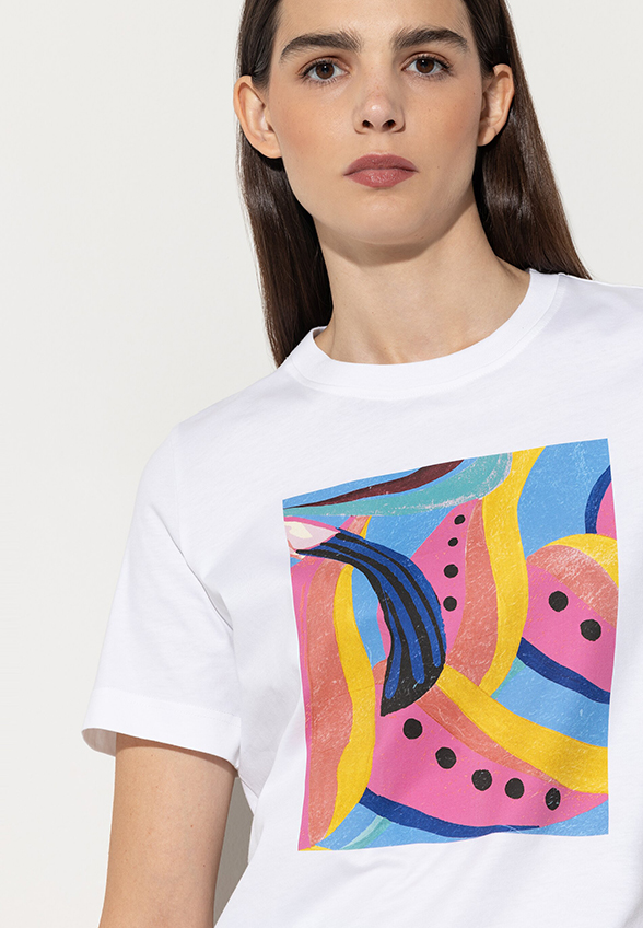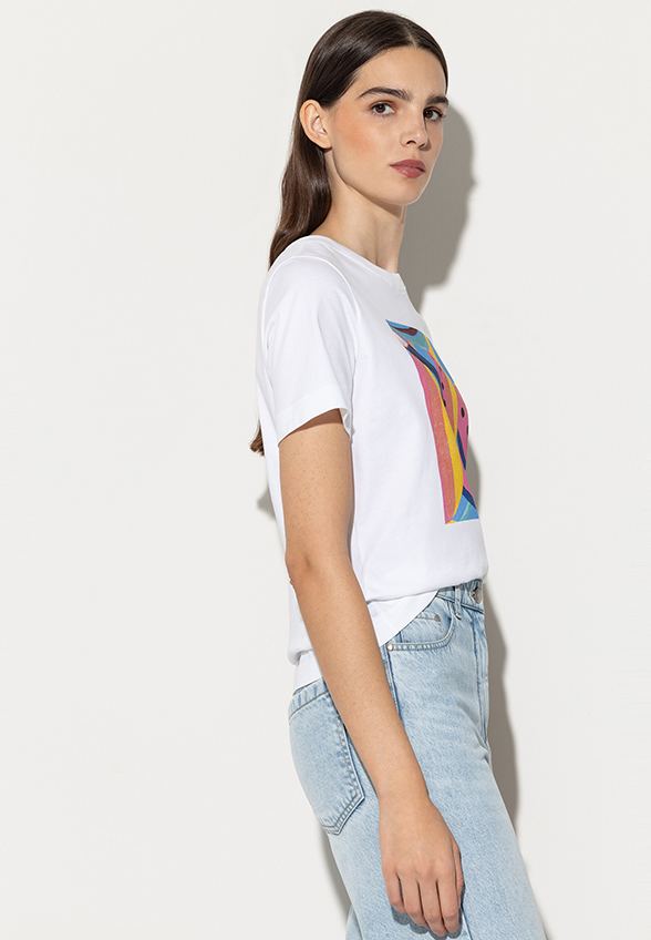 T-SHIRT Z BARWNYM NADRUKIEM BIAŁY