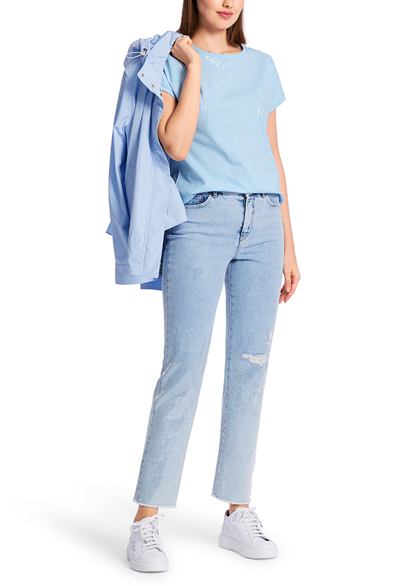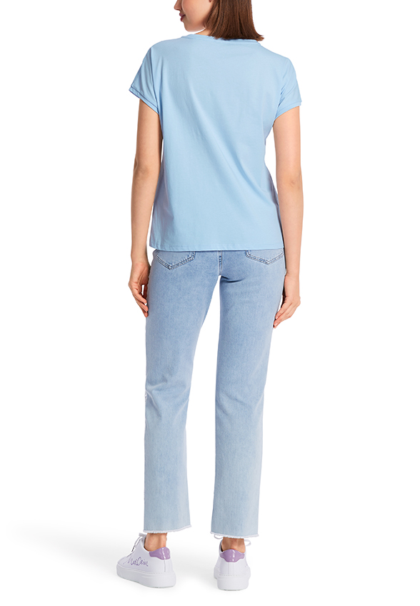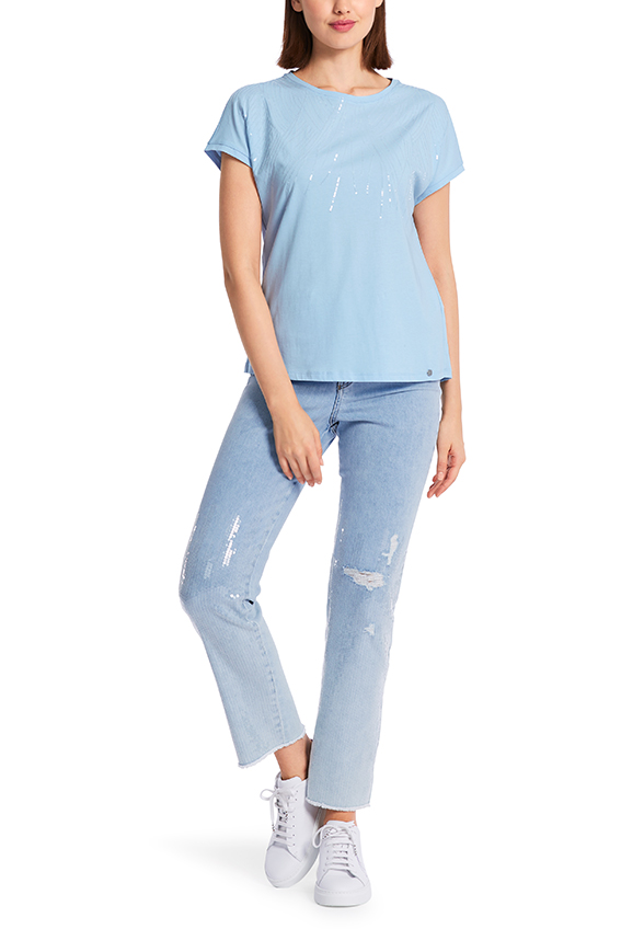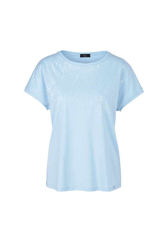 T-SHIRT Z CEKINOWYM HAFTEM NIEBIESKI