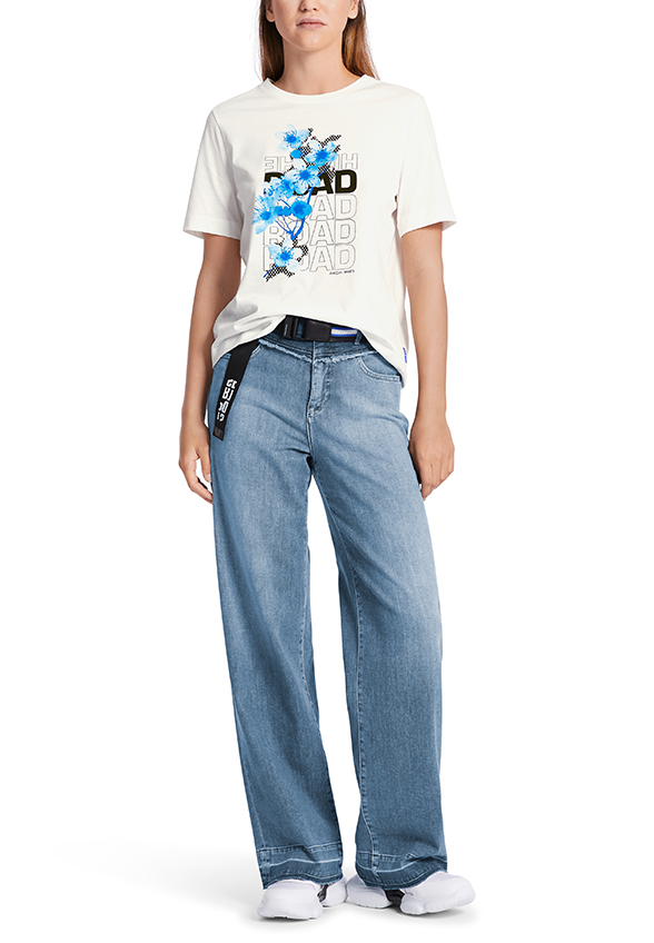 T-SHIRT Z NADRUKIEM KREMOWY