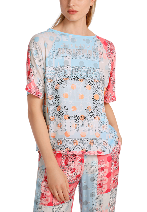 T-SHIRT Z NADRUKIEM PAISLEY RÓŻOWY