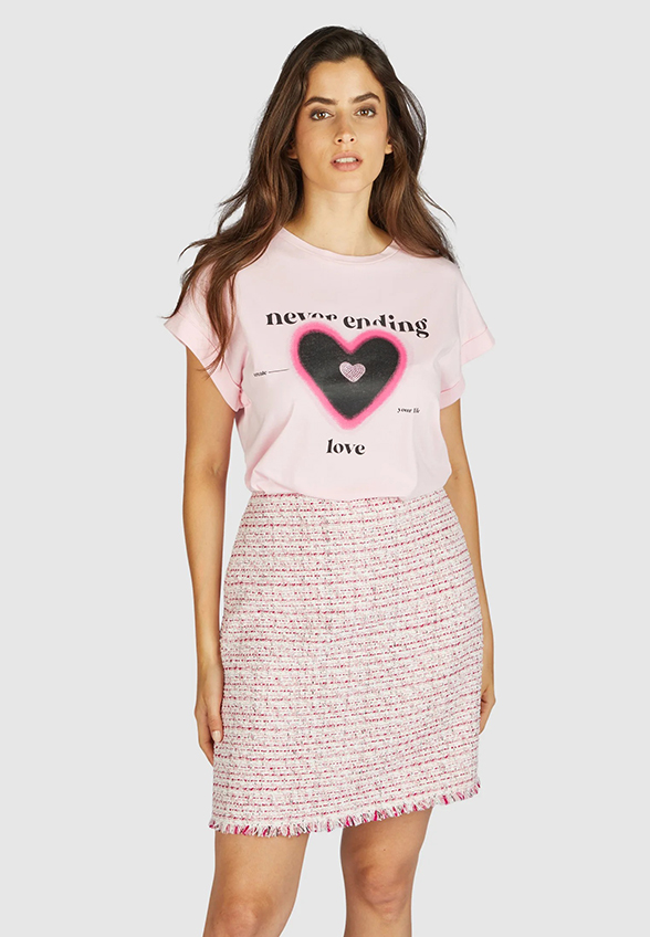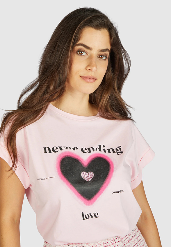 T-SHIRT Z NADRUKIEM RÓŻOWY