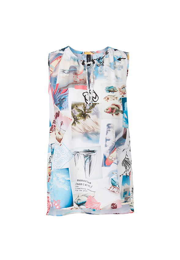 TOP BEZ RĘKAWÓW Z NADRUKIEM BIAŁY